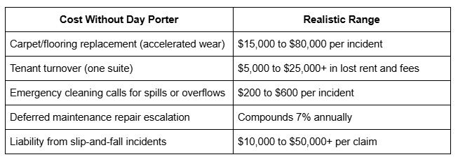 When you lay it out this way, commercial building maintenance through a day porter starts looking less like an expense and more like a hedge against much higher costs.